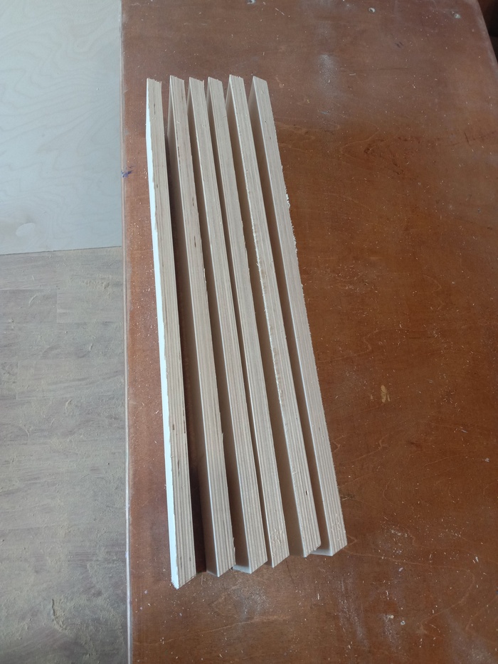 Теперь потребуются боковые панели. Та же самая фанера, запил под углом лобзиком