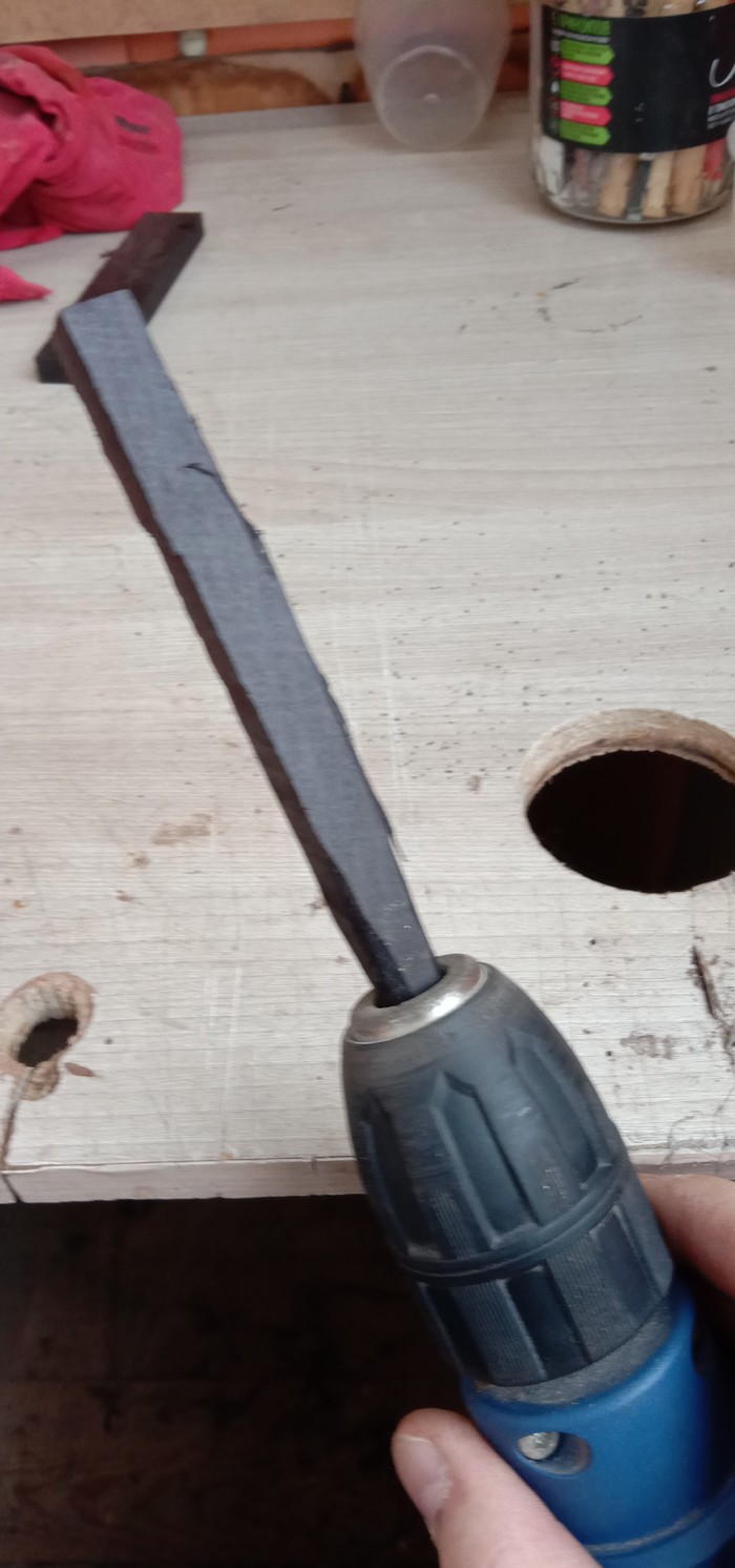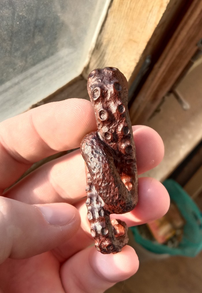 В закромах был обнаружен кусочек палисандра. Около года назад из него планировалось сделать щупальце, но что-то не срослось и поделка была заброшена в дальний ящик.