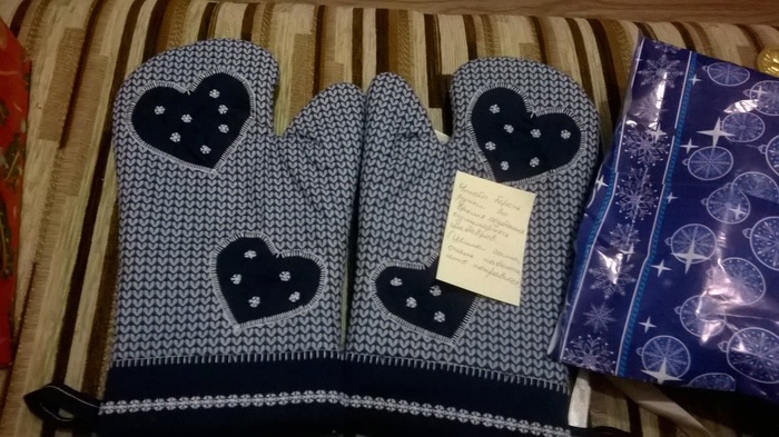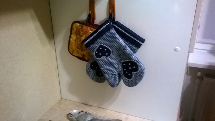 Прихватки-рукавички, сшитые моей Снегурочкой и занявшие свое почетное место) Уже активно используются и хорошо защищают руки)