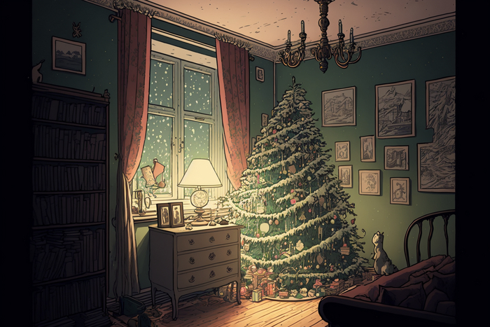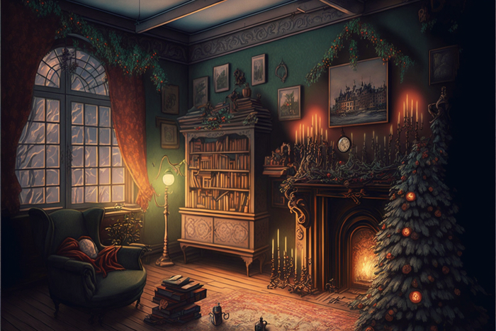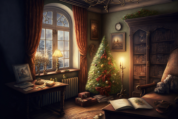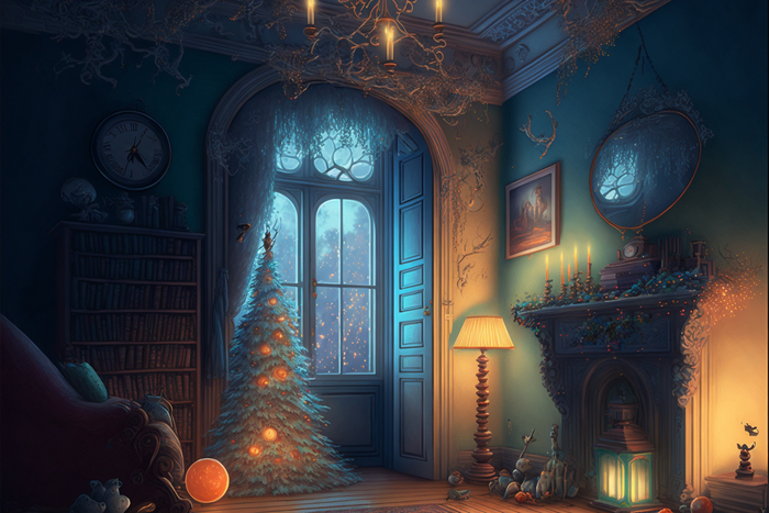 Именно для вас, коллеги, я сгенерировал в Midjourney красочные фоны с новогодними антуражами комнат для видеозвонков.