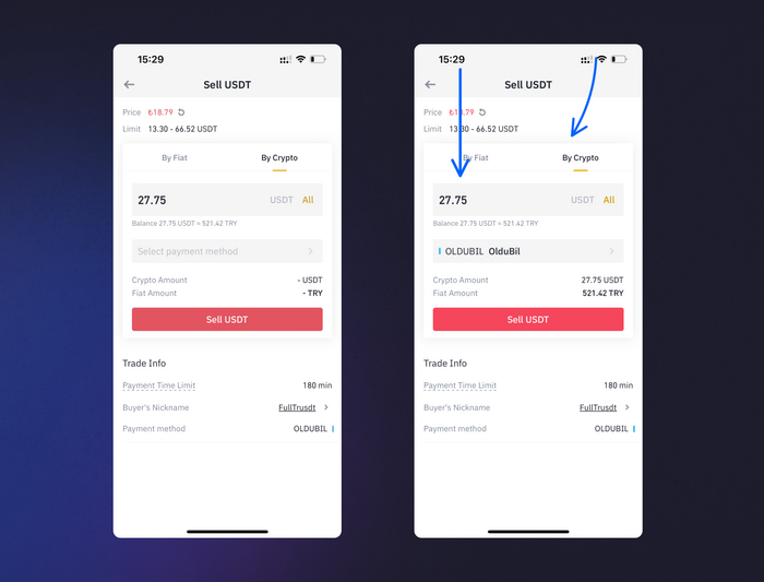 Данный метод пополнения подразумевает конвертацию рублей в USDT, после в лиры и доллары. При проведении этой процедуры могут возникать небольшие погрешности при зачислении средств, в большую или меньшую сторону. При пополнении Binance, курс USDT будет немного отличаться от курса USD ЦБ РФ, т.к. это не одно и тоже.
