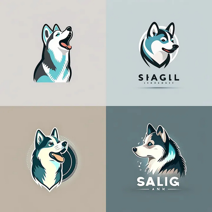 simple logo design of cute husky dog, vector, flat 2d, company logo, sing style