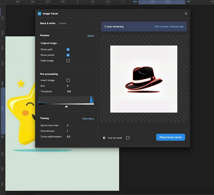 Используя плагин Vectorize и Image tracer можно трассировать (векторизовать) простые черно-белые логотипы, но со звездочкой ни первый ни второй не справились.
