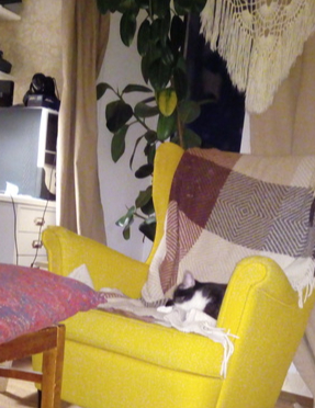 Тут, вот кстати видно как разросся товарищ и кошонку видно.