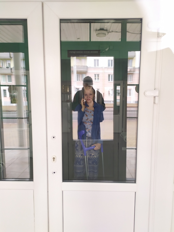 По дороге стопа начала отекать и чуть синеть. Уже у ресторана, было решено на всякий случай отвезти меня в травмпункт. Я ,как обычно, сказала, что все в порядке, скоро вернёмся. Чем меньше людей смотрит с жалобным видом, тем лучше себя ощущаю. Пока доехали до травмпункта, ножка начала болеть значительно сильнее. Видимо болевой шок ушел. Мы вышли из машины, я допрыгала до приемной и в ожидании уселась на лавку.