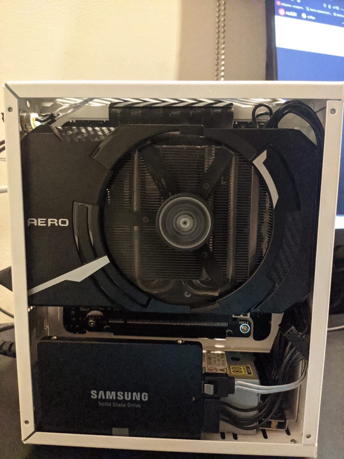 Вид из корпуса, проблем не было, встал идеально. Подключен через райзер ADT Link.
