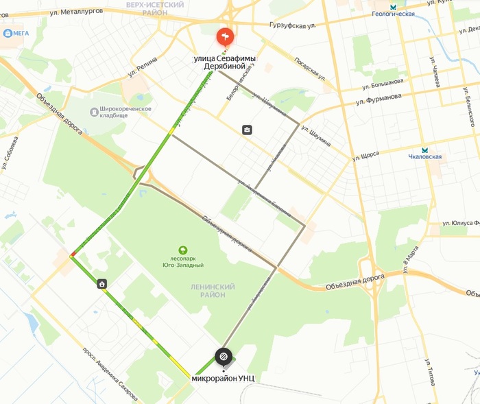 Вот примерно такой у нас получился маршрут примерно 8 КМ. Только до заправки мы не доехали один поворот. Так получилось, что ни я, ни ребята не знали точно где находится эта заправка и поворот на неё с улицы Вонсовского я пропустил, но знал что дальше есть автобусная конечная где мы и развернулись. Снова выехали на Восновскгого и оставалось повернуть в этот раз уже налево, но тут меня настигла Фабия которая намеревалась нас обогнать.