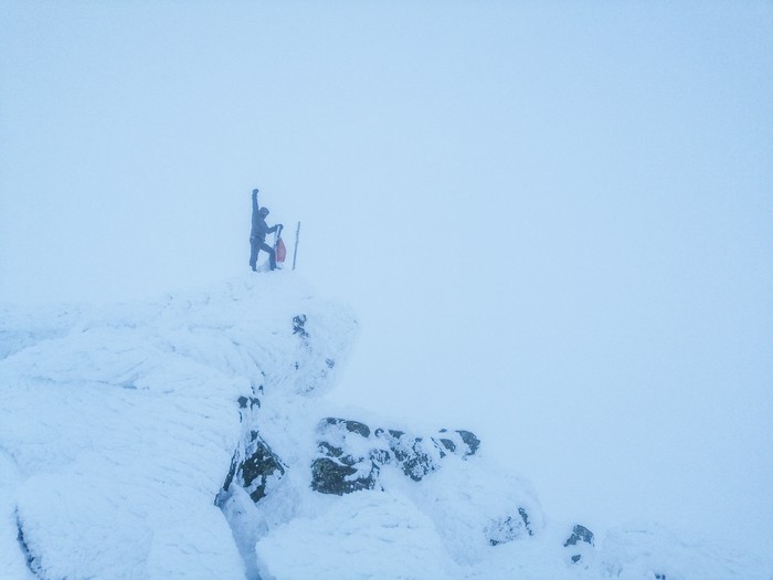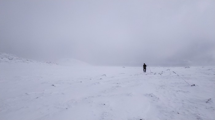 Снег, снег, снег и ни намёка на просветление на горизонте. Шаг за шагом мы добрались до вершины. Пора возвращаться.