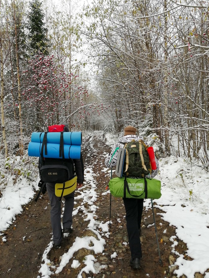 Доехав до 6-го км, мы оставили машину и двинулись в путь до отметки 13й километр, где нужно было разбить лагерь.