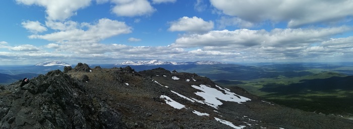 Вид с горы Семичеловечья на горы Косьвинский и Конжаковский камень.
