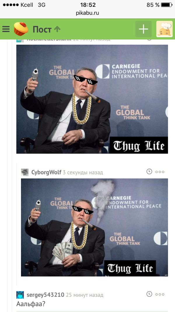 28 Zhaseek Становление гангста-НАНа (комментарии) 9 лет назад Комментаторы Пикабу Люблю вас) Показать полностью 2 Скриншот Комментарии Комментарии на Пикабу Нурсултан Назарбаев Thug Life Не мое Длиннопост
