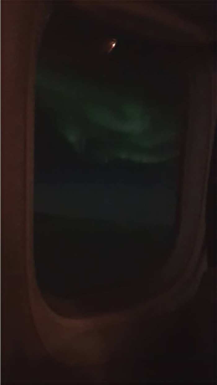 Из окна иллюминатора можно наблюдать северное сияние (простите за шакальные фотки)