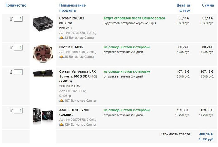 Заказал через друга комплектующие, отправили из Германии с начальным весом 9555 гр., в отделении почты РФ №102902 уже 7840 гр. ¯\_(ツ)_/¯