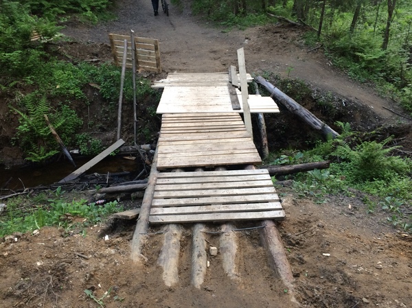 Перед уходом вечером облили остатками морилки, немножко изменили дренажную канавку с обеих сторон (теперь она обходит мост справа) и ушли.