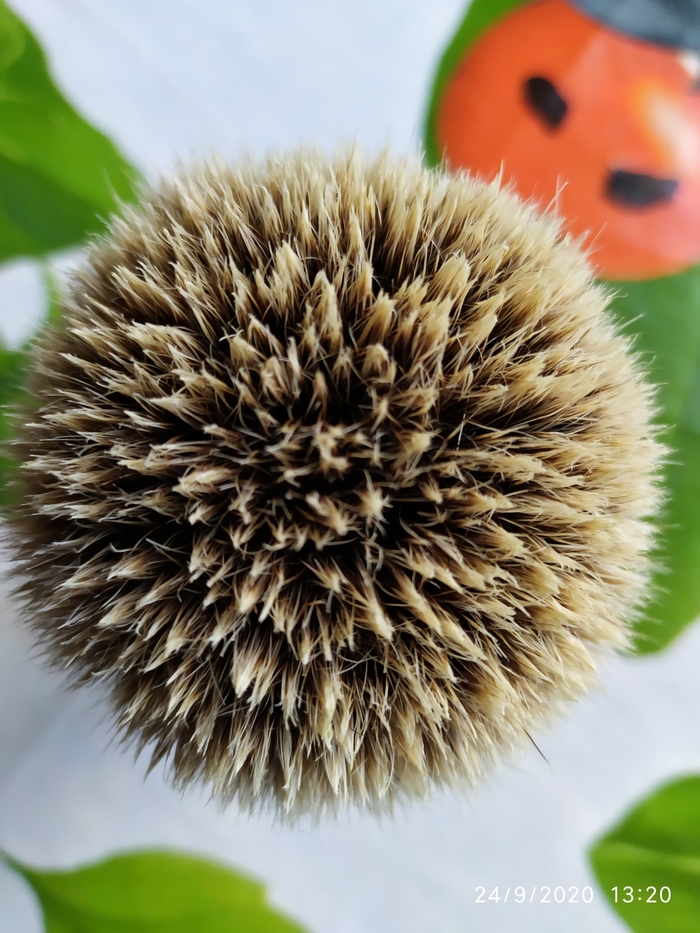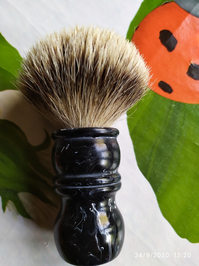 Помазок: синтетика от YAQI ,узел 26 мм, длина ручки 75 мм, длина щетины 55 мм в меру упругий, сейчас в основном им и пользуюсь, с барсуком этой же фирмы так и не смог подружиться.