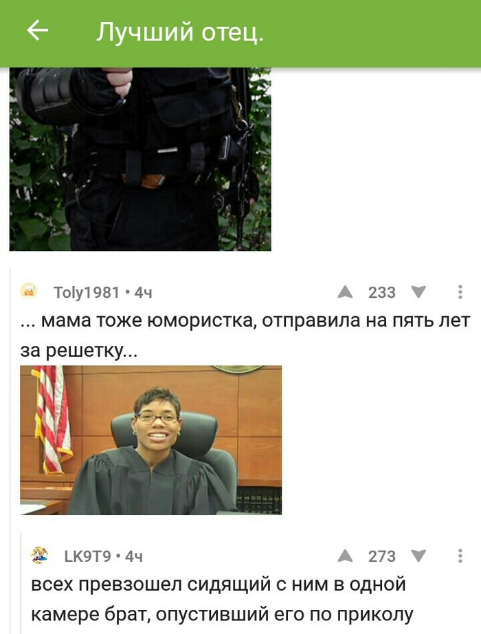 Итак, мой друг едет по правому ряду, левый свободен. Спокойно начинает выезжать на шоссе, в этот момент сзади появляется и несется к повороту огромный внедорожник, обходит машину друга слева и тут же пытается вклиниться обратно в правый ряд, опасно приближая машину. Впереди, на полосе, стоит фура, и водитель-лихач бьёт по тормозам. Он собирается выйти из машины, явно с недобрыми намерениями, и в этот момент из кабины грузовика вываливается гаишник, и бежит к нему, размахивая жезлом! Лицо водителя надо было видеть... Друг же спокойно поехал домой.
