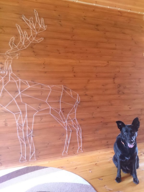 Новый дом, новый для меня вид творчества. Решила разнообразить деревянную стену нового дачного дома северным оленем. Сначала была идея оформить всё в морском стиле, сделать на стене карту мира, а вокруг паруса, канаты, огромный штурвал, попугаи по углам... А потом отпустило с: