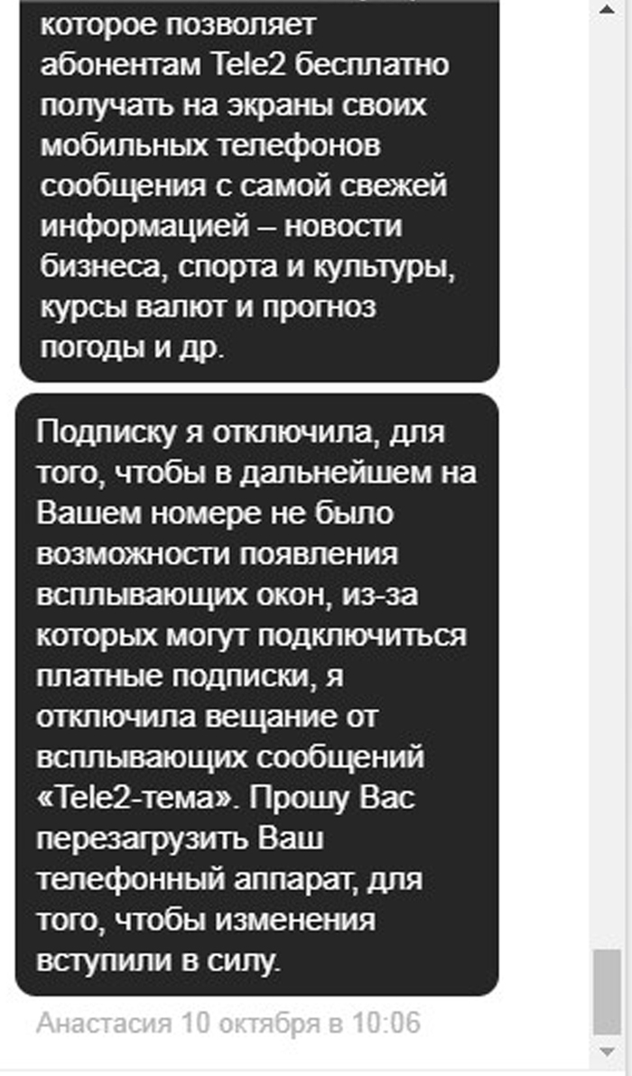 Теле2 и всплывающие сообщения.