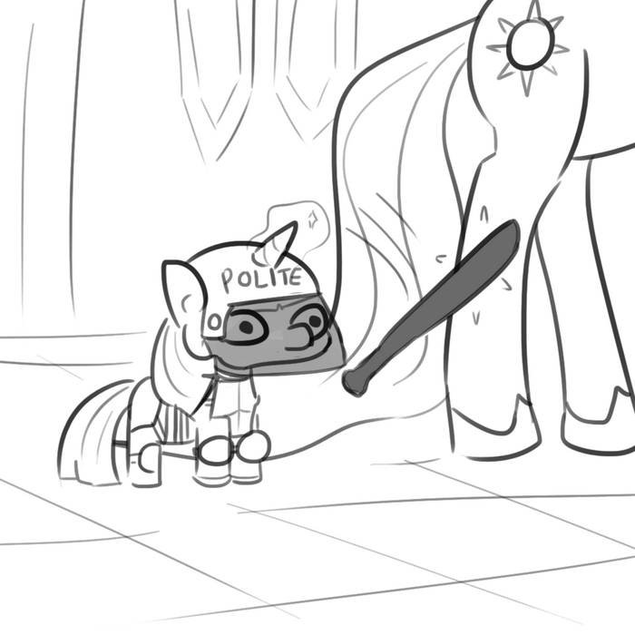 Селестия :Твайлайт, у нас нет Королевы, у нас есть только прекрасные Принцессы!