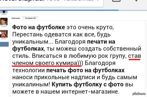 Zokar А что, если футболку я хочу, а становиться членом своего кумира нет? 10 лет назад К посту: http://pikabu.ru/story/_3580897 Футболка Редактор