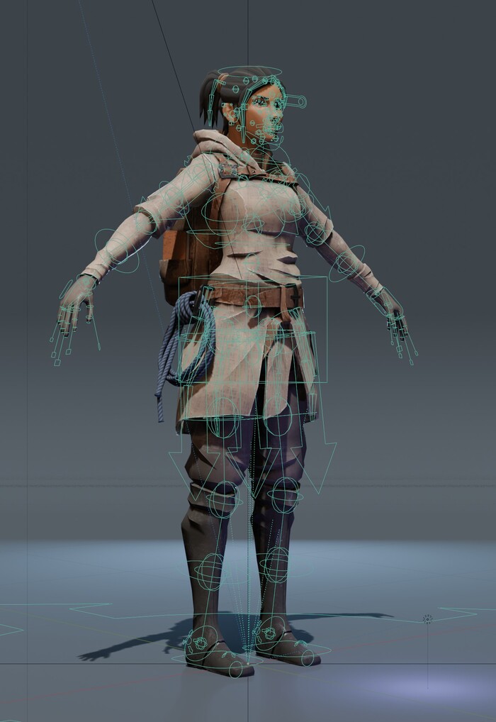 Сначала сделал новый силует низкополигонный(можно сказать блокаут), по их концептам, затем что мог просто засабдивайдил, заскульптил некоторые детали(швы у одежды, небольшие складки) затем допилил блокаут в низкопологонную модель, использовал шринврап мод, ах да, на высокополигонной добавил материалы в блендере с цветом, для ID карты для сабстанса, залил все в сабстанс пейнтер, запек текстурки, использовал айдишку как маску для материалов, тут особо не парился, использовал стандартные материалы(там платили если честно очень мало)), затем обратно а блендер(мне просто удобнее в нем дорисовывать), в нем дорисовал глаза и немного вариации цвета кожи(краснота, веснушки).
