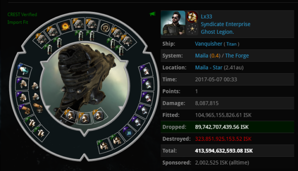 7 мая 2017 года около 3:30 утра по московскому времени в системе Maila многопользовательской онлайн-игры Eve Online была проведена спецоперация по поимке и уничтожению фракционного корабля Vanquisher, самого дорогого в игре корабля класса Titan. Благодаря совместным усилиям пиратских альянсов Really Strong Alliance, Snuffed Out, Project.Mayhem. и их союзников был пойман корабль игрока Lx33, члена альянса Ghost Legion. Помимо того, что сам корабль является самым дорогим в игре, он был буквально нашпигован дорогостоящими офицерскими модулями. Общая стоимость корабля со всеми модулями по оценке сайта zKillboard составила порядка 414 миллиардов ISK, что эквивалентно примерно $5800