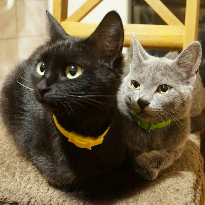 Киса оказалась фенотипом русской голубой со всеми вытекающими причудами: она грызет картон как мышь, следит за всеми, кто чистит зубы или идет в туалет, все также ест собачий корм, отбирает у пса кости и уничтожает пакеты.