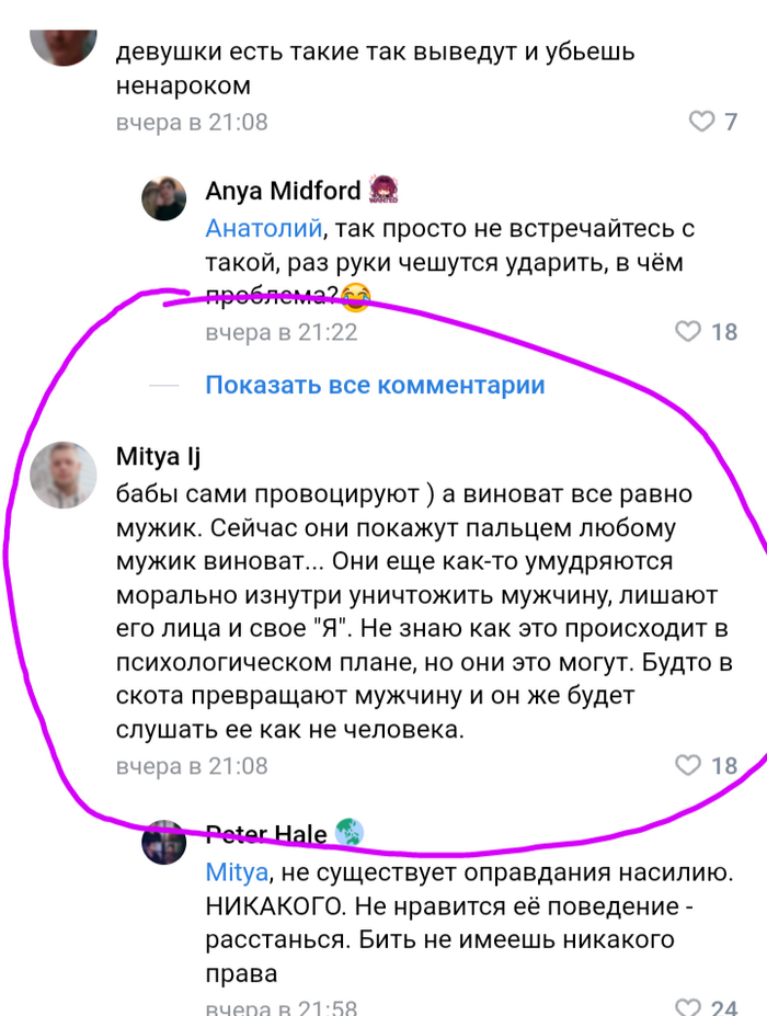 7 лет говорит, что если я разведусь, пойду в психушку. Теперь готовит ходатайство в суд о признании меня шизиком😠 хотя сам меня бьёт, я его жалела, не обращалась в полицию, так как он то угрожал повеситься, то уйти на СВО🤧 собирал чемодан, ходил грустным, что я после побоев шла к нему извиняться.