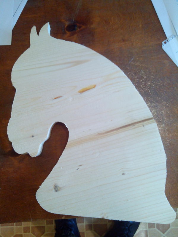 Нашел в сети шаблон головы лошадиной, распечатал, купил мебельный щит, черенок для лопаты и болт-стяжку.