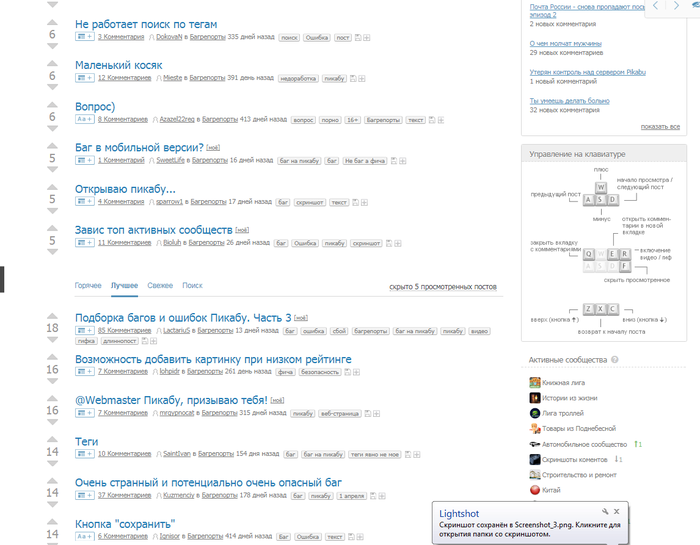 Т.е. верх уезжает вниз, вверху вообще не лучшие, а те, что с простой главной страницы сообщества. Если крутить ниже, то всё повторяется.