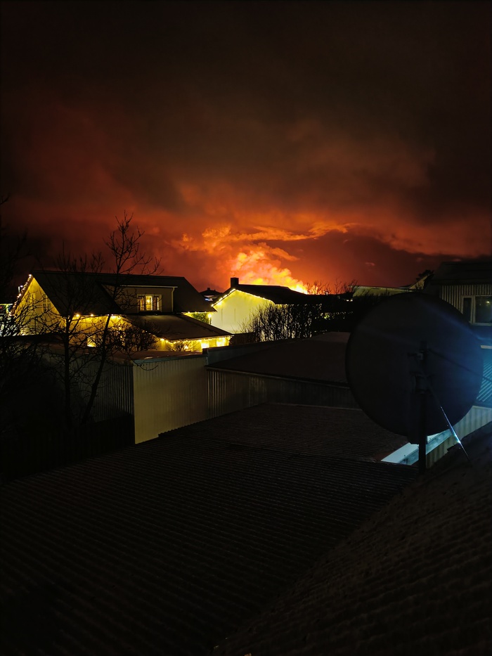 Лично я живу во втором по отдаленности от зоны бума населенном пункте, городке Нъярдвик (Njarðvík), во агломерации Рейкъянесбайер (Reykjanesbær), это прямо рядом с аэропортом Кеплафик. Мне, естественно, когда это случилось, народ начал спамить что...ну, что ЭТО случилось. Пришлось идти смотреть в окно а там - фиг! Разводят, думаю. Ну ладно, ещё в другом окне проверю...ЁШКИН КОТ!