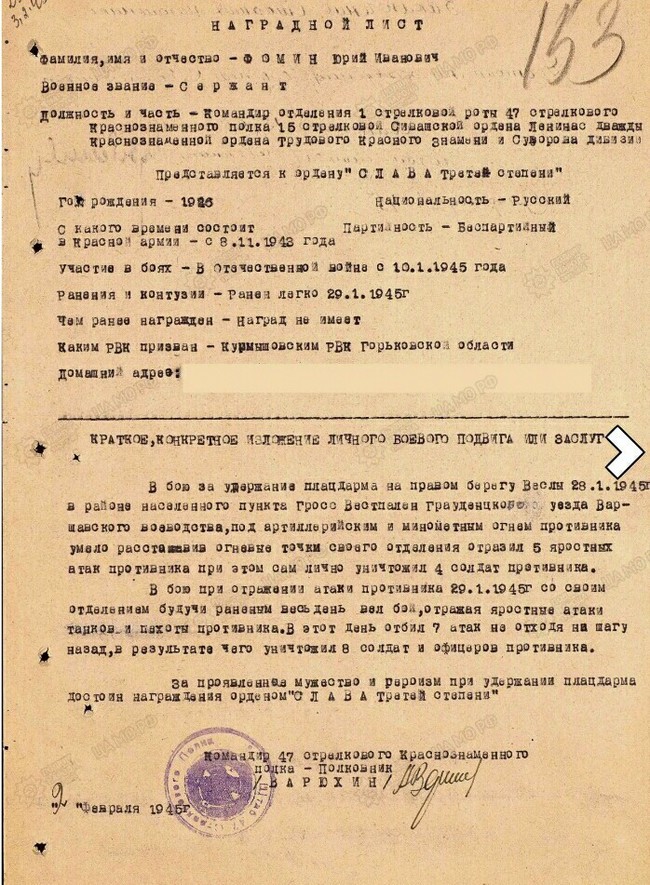 За храбрость получил ордена Славы, Красной Звезды, медаль «За оборону Сталинграда».