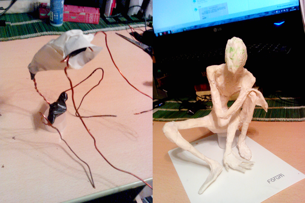 Первым делом идёт костяк: проволочный скелет, обмотанный бумажным скотчем: