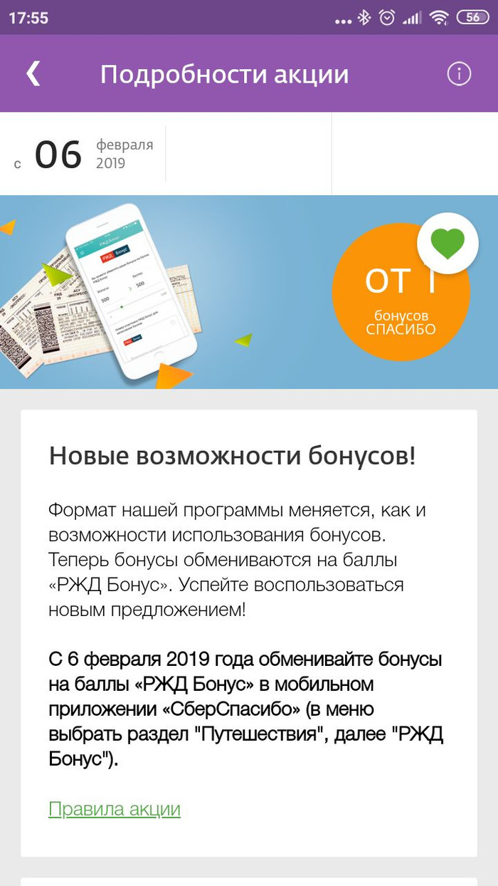 Однако Сбербанк совместно с РЖД предлагают с 2019 года акцию, согласно которой можно обменять бонусы “Спасибо” на “РЖД Бонусы” по курсу 1 к 1, а потом “Бонусы РЖД” потратить на приобретение билетов.