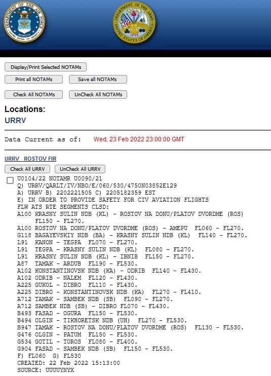 Россия закрывает воздушное пространство вдоль северо-восточной границы Украины для полетов гражданской авиации. Выпущено соответствующее предупреждение.