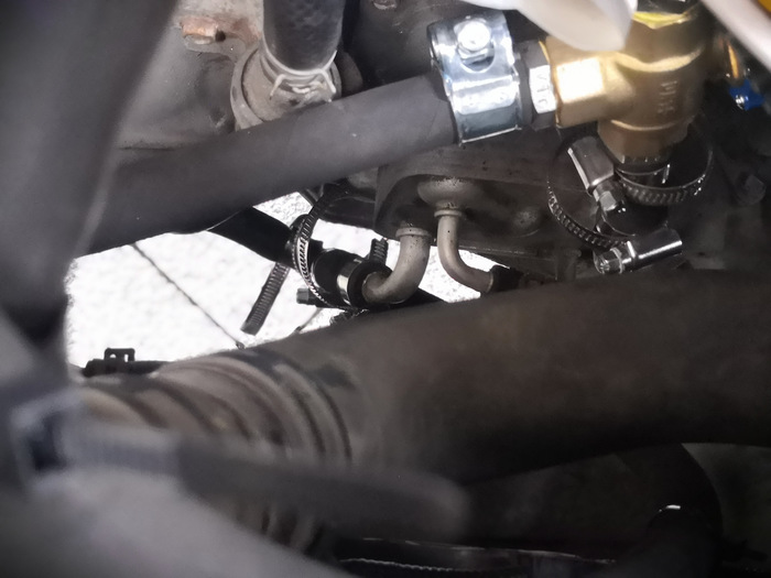 Кран НЗ на блок двигателя встал как родной, немного модернизировав хомут: