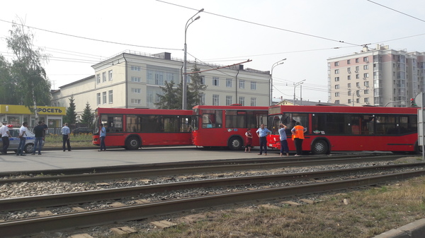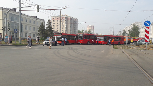 15 abrhwallk Эпичная авария 9 лет назад в погоне за лишними двадцати пятью рублями в г. Казань столкнулись три автобуса, перекрыв при этом всю дорогу и трамвайные пути :) вопрос знатокам ПДД: кто виноват? xD фото моё, снято на Галактика А5 (2016) Показать полностью 1 [моё] Автобус Авария Моё