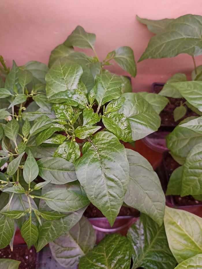 Подсвечиваются линейными светильниками фито и обычным, суммарной мощностью 40 ватт, 16 часов в день. Тут у меня халапеньо, кайен лонг, тай хот, хабанеро гигант, наганеро скорпион карамел и Каролина. Планирую часть оставить в горшках на следующий год, а остальное высадить в теплицу. Буду рад советам по содержанию)