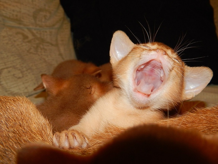 Еще у него в результате операции удалили зубы с одной стороны почти полностью в прошлом году, и теперь он часто спит с видом "кошька самоубилься окошкамана"...