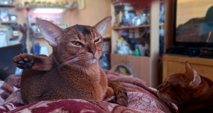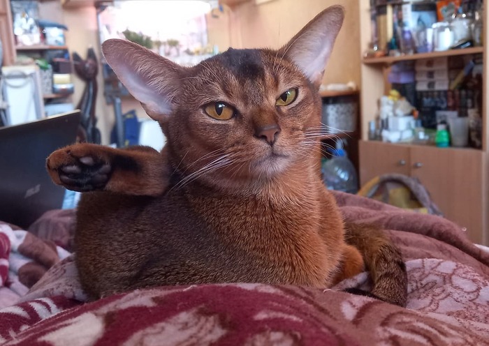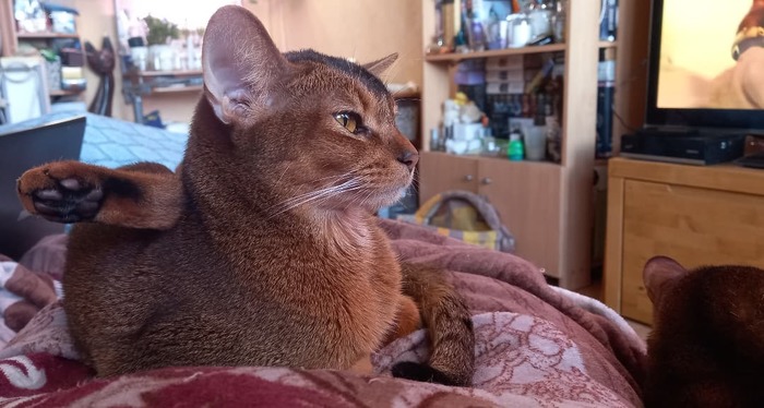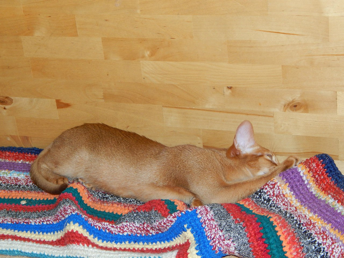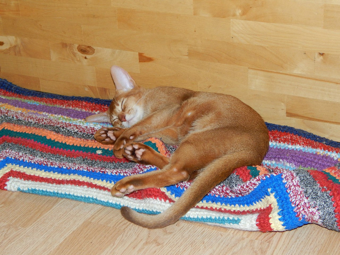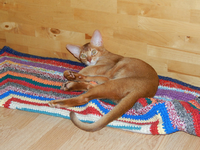 Наглая сорельная морда оккупировала бабулин коврик. Вязала наша бабушка.