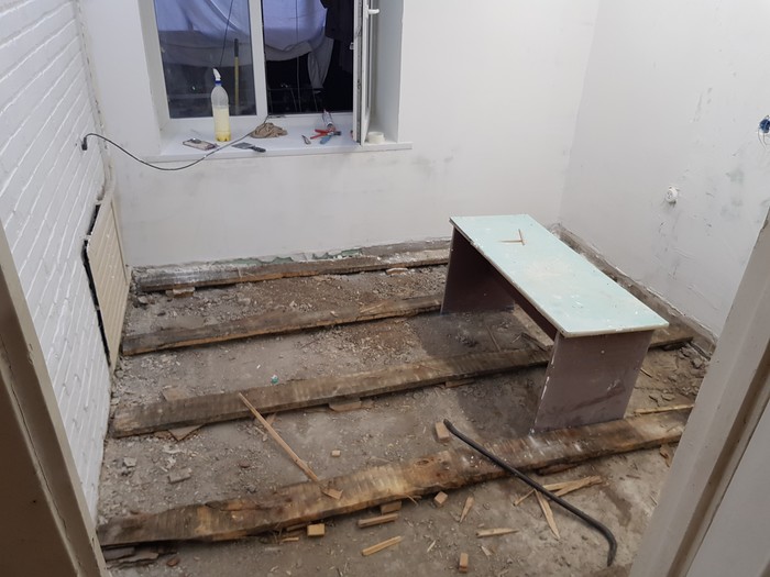 Итак, дано: комната 18.2 квадрата, полы - скрипучий, проваленный паркет.
