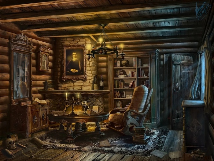 Парни фыркнули, и стали спускаться, а я снова смотрел в окно. Когда стало все преображаться, я так и не понял. Но стало теплее, горячо даже по спине. И светло в комнате. Обернувшись, я увидел камин и свечи. А еще небольшой диванчик, стол, заваленный книгами, два стула. Почему-то это не вызвало никакого удивления, словно так и нужно. За окном послышался шум. Повернувшись вновь туда, увидел, что внизу кипит бурная деятельность. Усадьба и постройки на месте, ходят люди с факелами, ржут лошади, на повозках кричат куры и гуси. Но опять же – меня это не удивило. А удивило меня то, что между людей сновали тени, странные тонкие и мелкие, но быстрые. Они похоже, помогали разгрузить телеги, обихаживали лошадей. Позади раздался топот, точнее цокот. Резко обернувшись, я увидел, что прямо на меня смотрит. Только не смейтесь – это был черт. Ну вот точно такой, каким его рисуют на всяких лубочных картинках. Невысокий, мне по пояс, с черной шерсткой, рогами и копытами. Нос пятачком, хвост крючком. Выглядел он возможно забавно, карикатурно. Почему возможно? Так потому что тогда мне было не до смеха. Страшно стало. Ощущалась опасность от этого существа, очень сильная опасность. Мысли даже путались. Я медленно отходил к окну, а чертик стоял и смотрел. Выглянув в окно еще раз, я увидел, что нахожусь каким-то образом на первом этаже и прямо под окном земля. Просто парк, без всякой усадьбы и кипучей деятельности. Что тогда затмило мне разум, но я решил сигануть в окно. И уже готов был, как….