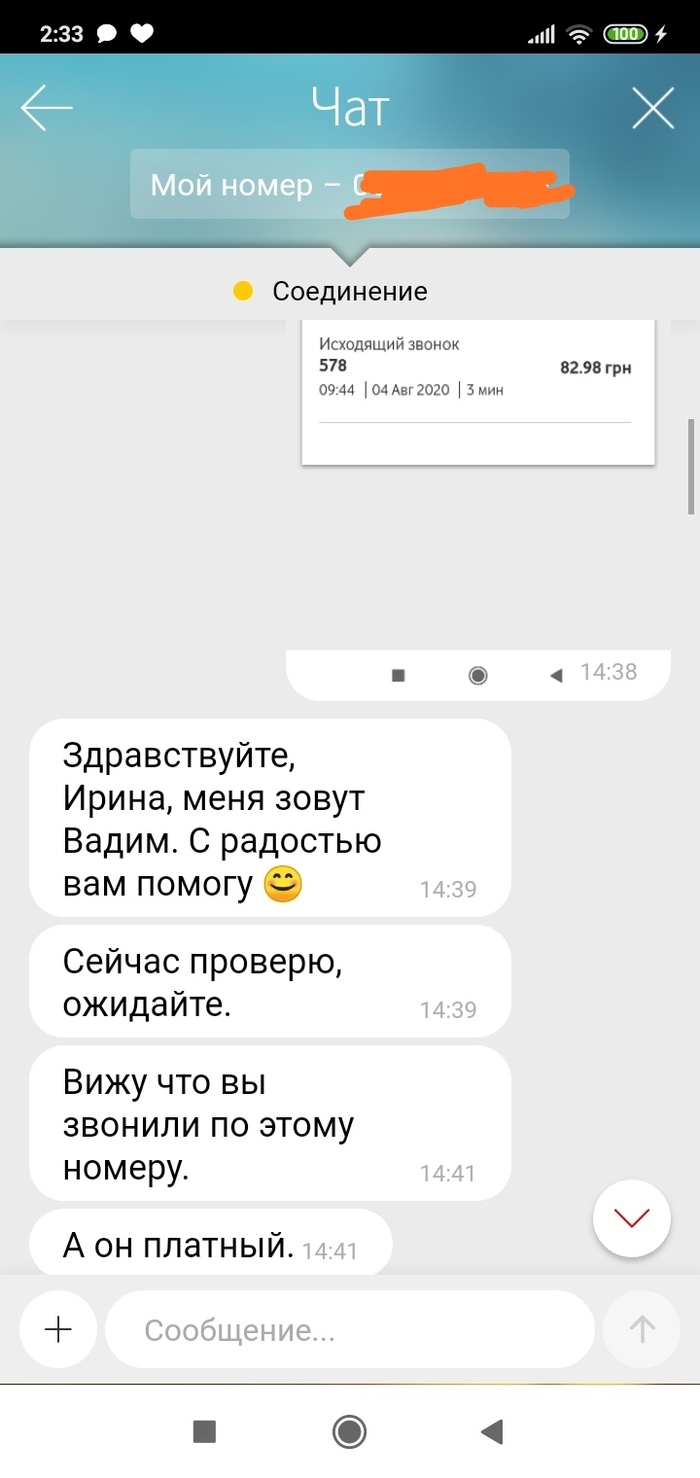 Написала в чат, создали заявку, вскоре пришёл ответ. Тарификация была проведена корректно, но деньги мы вернули)