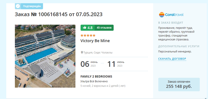 Здесь только отель, без перелёта. Я в тот год оплачивал всё отдельно - билеты, отель, трансфер, страховку. Суммарно вышло 243.