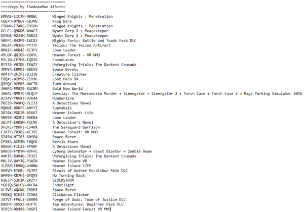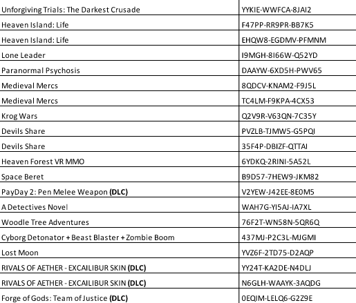 Спасибо еще раз всем кто отправил ключики. От себе в следующий понедельник подарю копию Magicka 2 для RU и CIS тому, кто отправит за недельку больше всего ключей. Напомню, что почта для этого вот такая: pikakeys@gmail.com