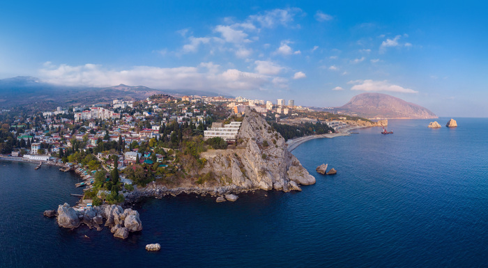 Замок Ласточкино гнездо, расположен на отвесной 40-метровой Аврориной скале мыса Ай-Тодор в посёлке Гаспра на южном берегу Крыма. «Ласточкино гнездо» стало эмблемой Южного берега Крыма.