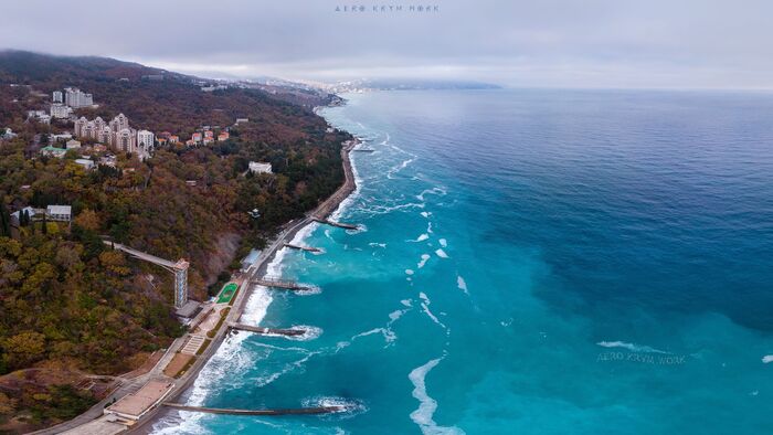 Замок Ласточкино гнездо в Крыму (аэропанорама)