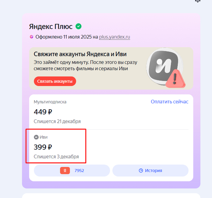 Захожу в подписки и вижу, мне включена какая-то хуйня на IVI. Я к ним даже не заходил. Мрази опять пытаются меня ограбить. В этот раз даже письмо никакое на почту не прислали, просто включили списание.