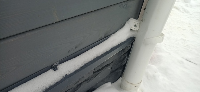 На этом фоне одинокий отлив, зачем-то прикрученный прямо на отделку кровельными саморезами, смотрелся совсем нелепо и грустно.