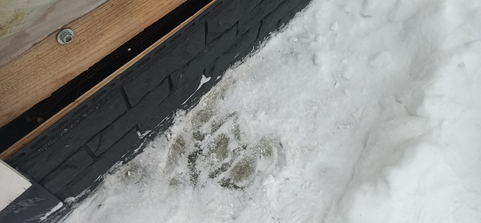 Декоративная отделка цоколя, которая была смонтирована на деревянную обрешётку, что уже доставляет, если речь идёт о конструкции эксплуатируемой во влажной среде, при монтаже была упёрта в грунт.